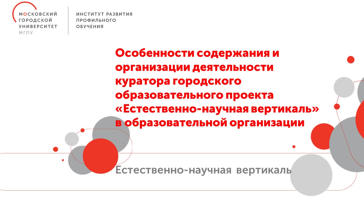 Область профессиональной деятельности – курирование городского образовательного проекта «Естественно-научная вертикаль» в общеобразовательной организации.